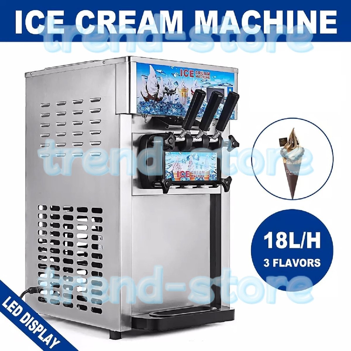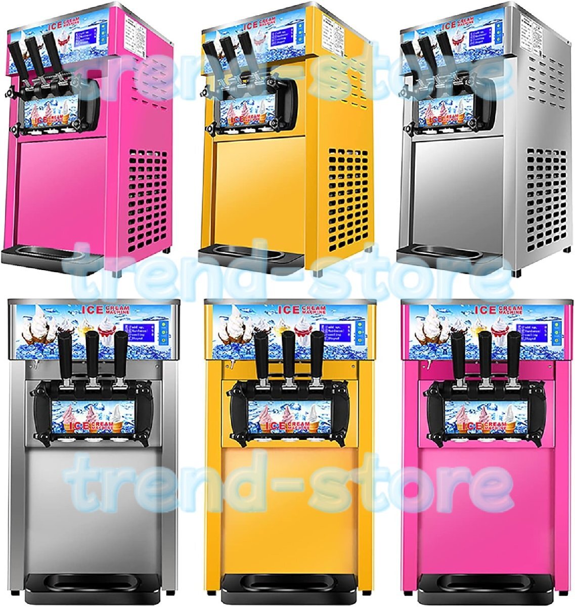 業務用アイスクリームマシン、1200Wカウンタートップソフトクリームメーカー、4.7ガロン/時間、3種類のフレーバーヨーグルトメーカー、自動洗浄、スナックバーカフェ用 (イエロー)