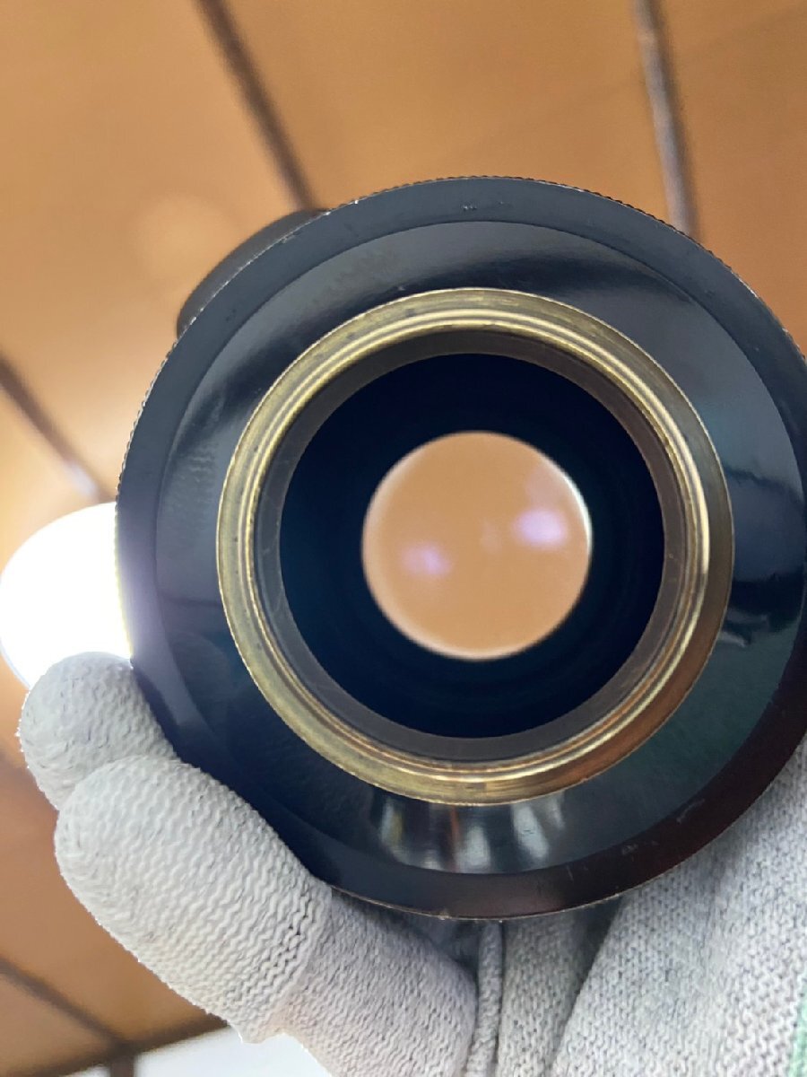 ・強い光に当てると前玉、後玉に僅かな拭きキズ、中玉周辺に薄汚れ、極小のチリあります。