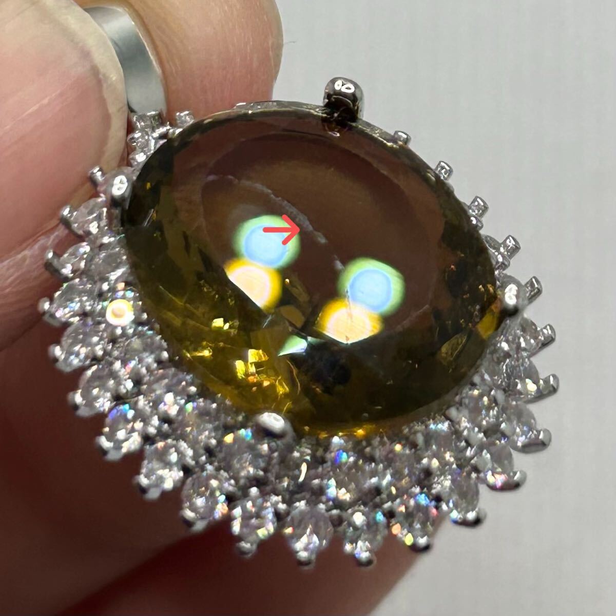 ★→部、見る角度によって、カラーストーン表面にスジあり。