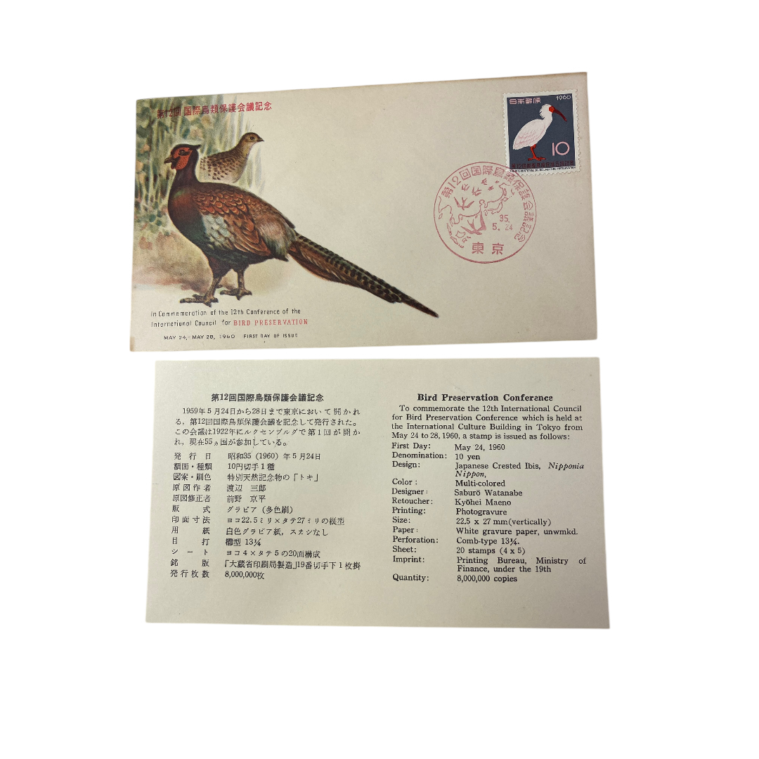 FDC 第12回国際鳥類保護会議記念 【トキ】 1960年5月24日 初日カバー cc249