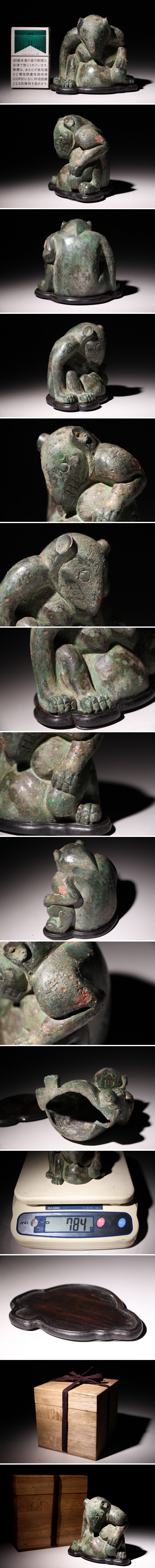 青銅 熊 神獣 寸法約11.5cm×約8cm×約10.5cm (検)置物 青銅器 古銅 唐物 中国美術 古玩