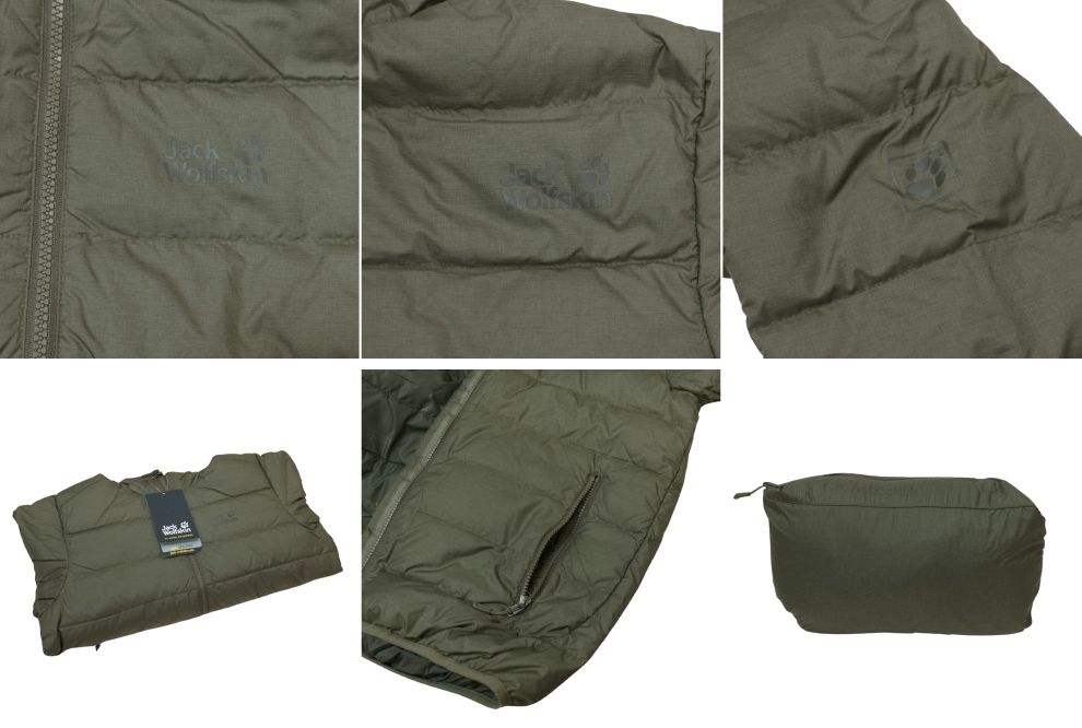 即決☆ジャックウルフスキン スカイ ダウンジャケット GN/XLサイズ 700FP 送料無料 軽量 高保温 カーキ ミリタリー メンズ XL