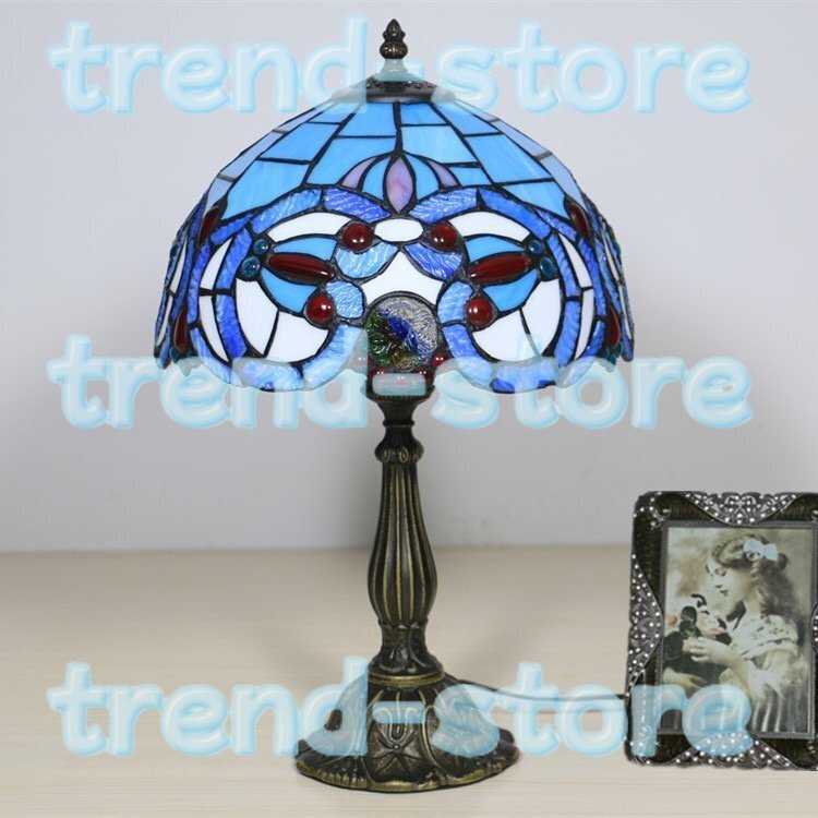 極美品★ステンドランプ ステンドグラス レトロな雰囲気 ティファニー技法 花柄 照明 アンティーク テーブルスタンド 室内装飾