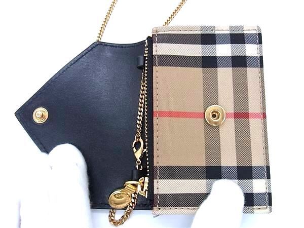 ■新品同様■ BURBERRY バーバリー ノバチェック キャンバス ショルダーウォレット コインケース 小銭入れ ライトブラウン系 FC0277