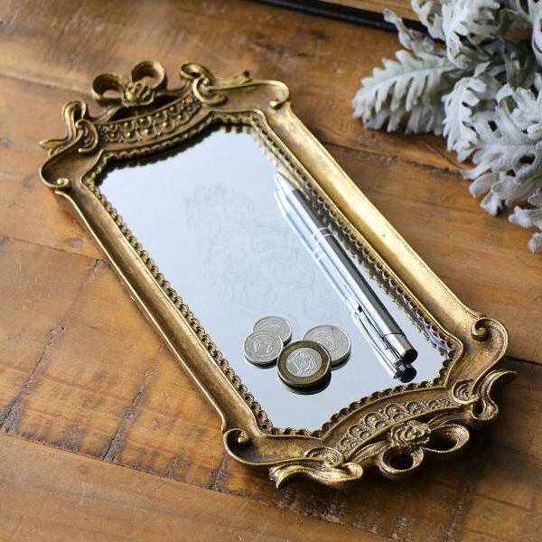 | デコラティブなフレームデザインに 心ときめくヴィクトリアン調のトレイ 時代を超えて大切に使われてきたような 趣きあるアンティークな風合いを再現 古き良き雰囲気や 重厚な美しさが楽しめるアイテムです パヒュームやアクセサリーはもちろんですが コーヒーとチョコレートをのせて ティータイムを楽しむのも有り! 暮らしのアクセントにオススメです 商品名 : エレガントなヴィクトリアントレイ ミラー 商品番号 : vin4057 全体サイズ(cm) : 幅30×奥行14×高さ2 トレイ面のサイズ : 幅20×奥行8.5 材質 : 樹脂 ミラー 重量 : 340g 生産国 : 中国 ※ミラーの擦り傷や小傷、プリントの擦れ等や僅かなガタつきはご容赦ください ※アンティーク加工の為のゴールド塗装が手に付着したり剥がれ落ちることがあります ※塗装ムラや傷等を施したアンティーク風仕上げです ※ディスプレイによる色の違いはご了承下さい |