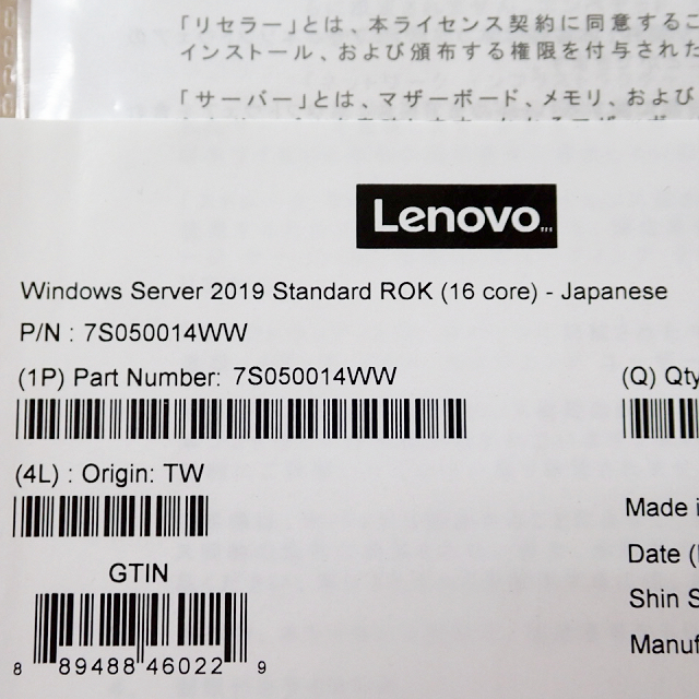 正規品 新品 Lenovo Windows Server 2019 Standard 16コア 日本語版 複数落札可 16コアライセンス 16core レノボ OEM