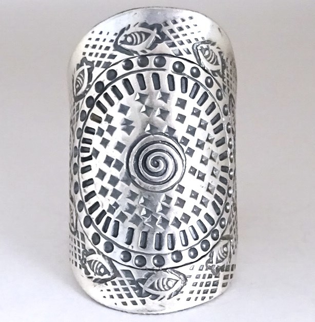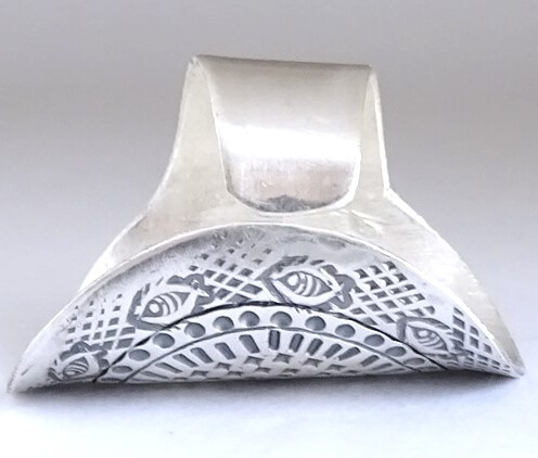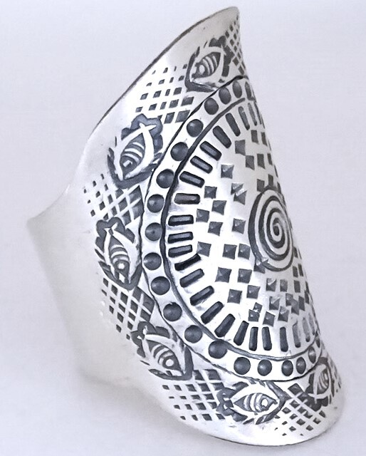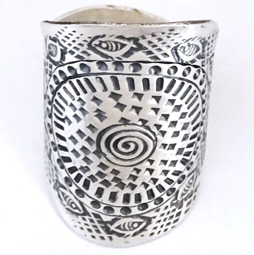 | ◆カレンシルバー リング 約23号 高純度 銀細工 刻印 文様 魚 渦◆カレン族・karen silver 指輪 シルバーリング【24tr54b】 |