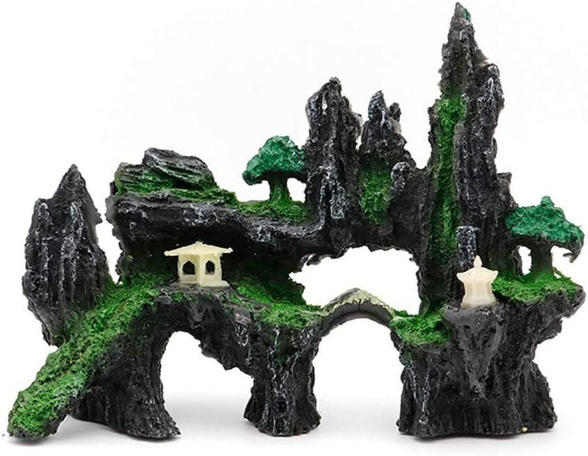 E845 アクアリウム 水槽オブジェ 山岳ロック 水族館 岩山 苔 灯篭 隠れ家
