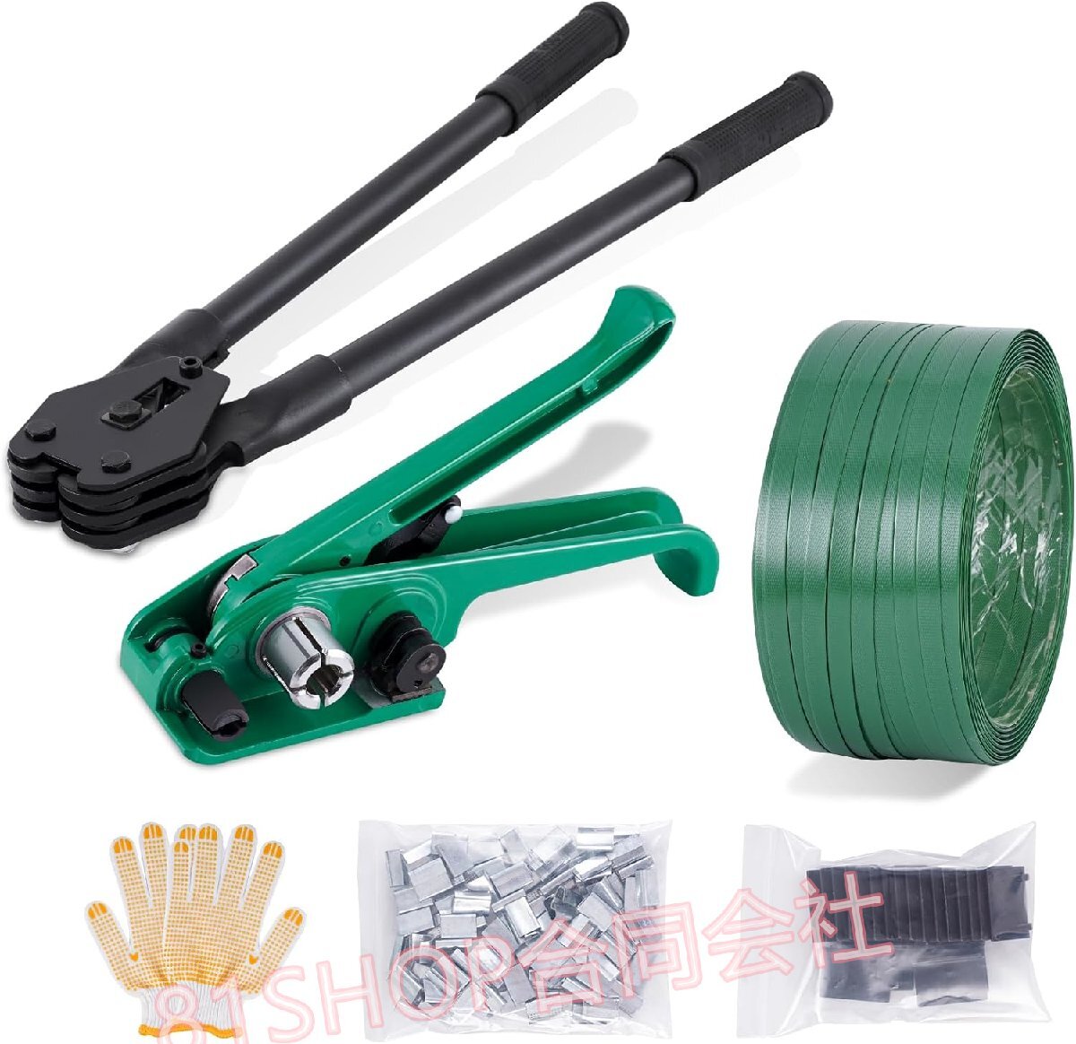 「81SHOP手動梱包機PETバンド結束機 バンドの引締切断封緘用幅12-19mmバンド用手袋+封緘機+幅16mmPETバンド*200メートル+金属シール*100+