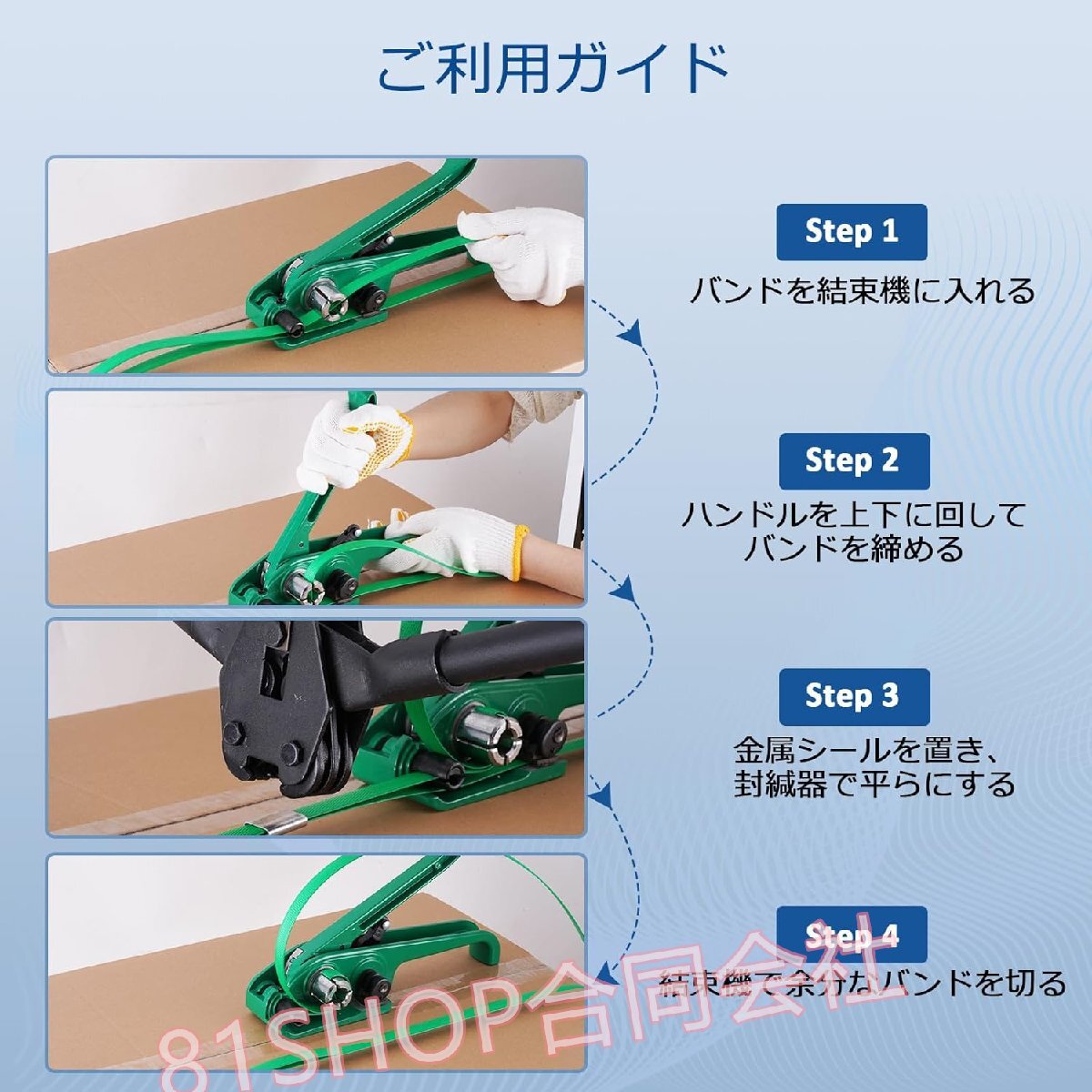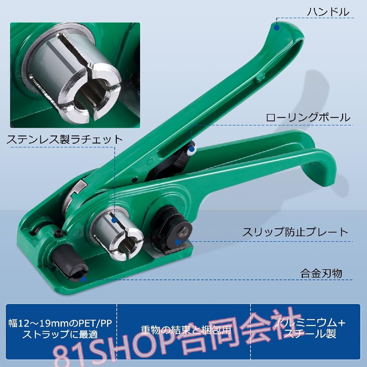 【PPバンドとPETバンド兼用】幅13~19mm、厚さ0.5-1mmのバンドを結束、切断、封緘することが可能で、市販されているさまざまなPPとPETバンドに適しています。