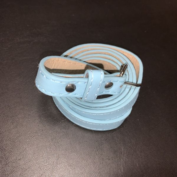 ベルト レディース 革 細め 水色 ライトブルー シンプル 金属 バックル Pu レザー スリムベルト カジュアル アクセサリー 水色 全長 100cm 幅 1.35cm 目安ウエスト 60-80cm