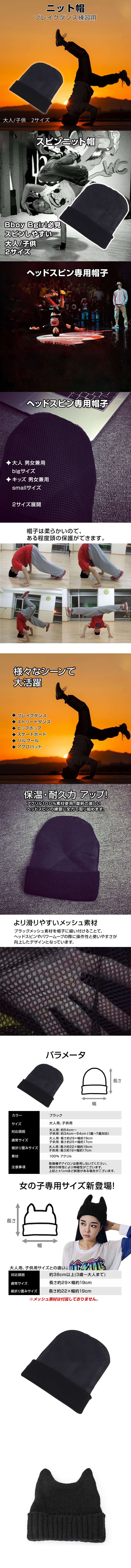 ブレイクダンスやヘッドスピンなどで使えるスピンニット帽です。 |