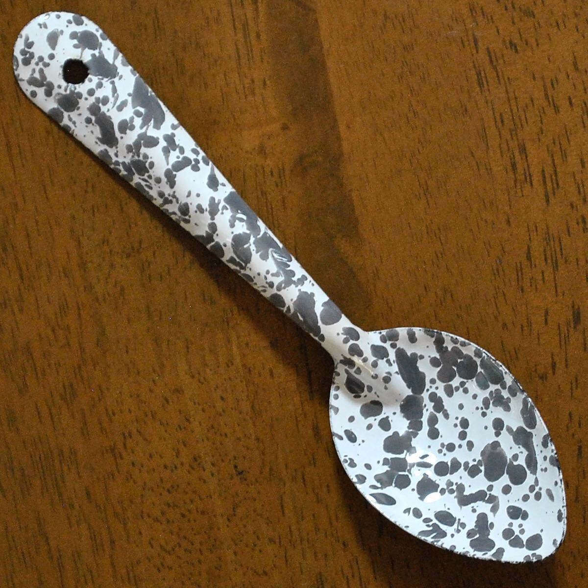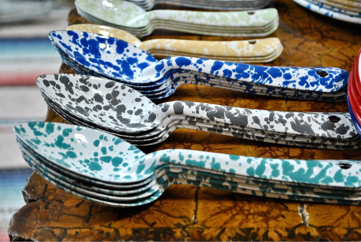 スプラッターパターンと呼ばれる独特の飛沫模様が魅力のホーロースプーン【Mサイズ】3色セットです。