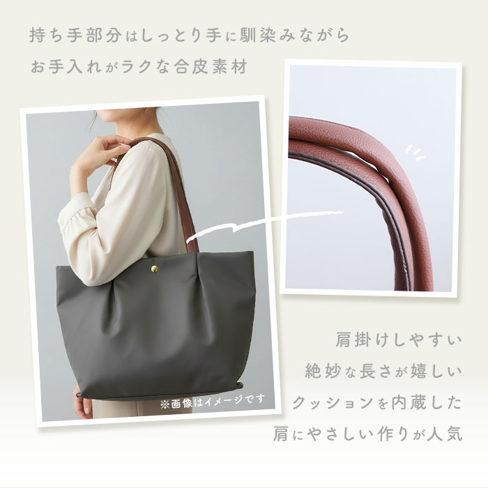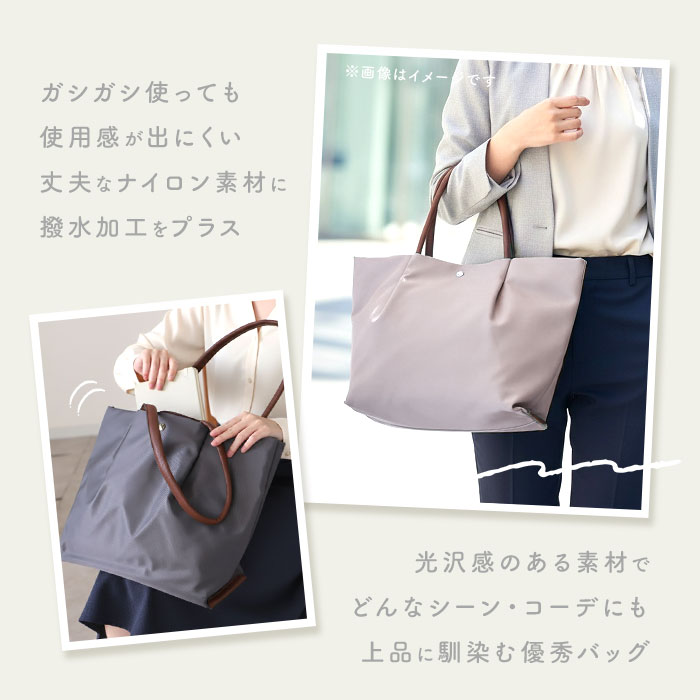 | 商品説明 | ・LAPTOPパソコンの持ち歩きもエレガントに・・・。人気のLegato Largoから、微光沢ナイロンPC収納トートが新登場。 ・艶やかな光沢を放つナイロン素材と、ゴールドの金具使いのコンビネーションが女性らしさを引き立てる、シンプルなトートバッグ。 ・メイン収納スペースは、中央のファスナールームが仕切りになったユニークな3ルーム構造。仕切りは可動式になっているため、スペースをフレキシブルに活用できるのがポイント! ・クッション性のある生地で仕上げた中央のファスナーポケットは、13インチまでのノートPC・タブレットの収納に対応。 ・マグネットボタンで簡単開閉するフロント側ルームには、スマホ等、小物収納の定位置にできるポケットが2つ。ポケットがバッグの開口部近くにあるから、取り出しがスムーズ♪ ・背面側ルームにはファスナーポケット×1、オープンポケット×1を配置して、お財布やコスメ小物の仕分けもバッチリ。 ・突然の雨にも慌てない!バッグ表面の生地には、水滴や汚れをしっかり弾くはっ水加工生地を採用。(※完全防水ではありません。) ・持ち手ハンドルには柔らかな合皮素材にクッション素材を縫い込んであるため、肩に負担を感じにくい優しい仕上がり。 ・ランチボックスも平置きにできるしっかりとした底マチと、A4サイズがすっぽりと収まるサイズ感で、通勤用トートとしても大活躍! |
