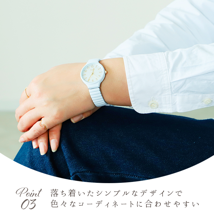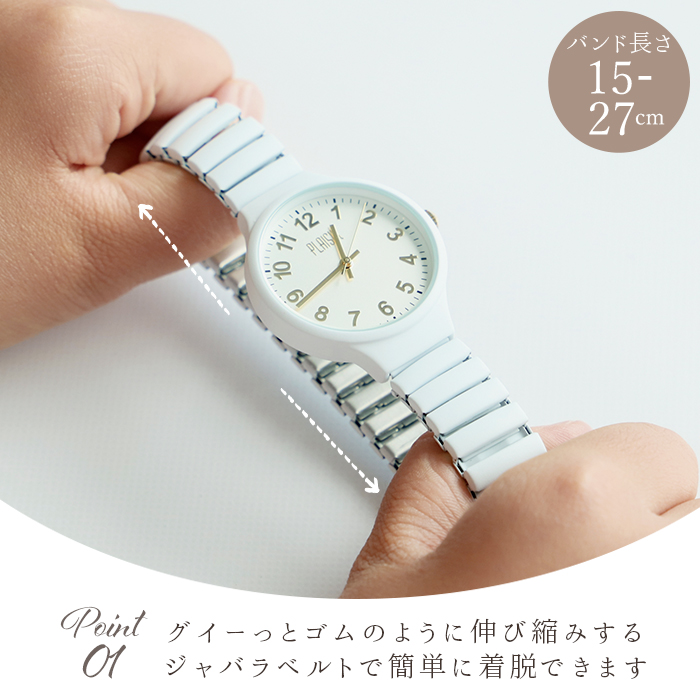 | 商品説明 | ・肌に優しいニッケルフリー素材のジャバラウォッチが登場! ・伸び縮みのするジャバラタイプで簡単装着。 ・見やすい文字盤でひと目で時刻が分かる。文字盤の横のつまみで時刻を調節。 ・マットな仕上がりで落ち着いた印象なので、色々なコーディネートに合わせやすい♪ ※すべての方に金属アレルギー反応が出ないことを保証するものではありません。 |