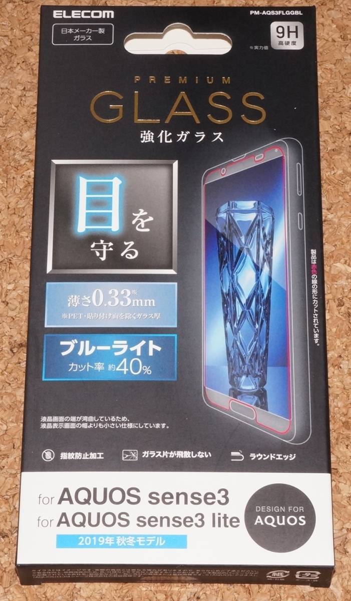 ELECOM AQUOS sense3/sense3 lite 液晶保護ガラスフィルム 0.33mm ブルーライトカット 新品・未開封です。