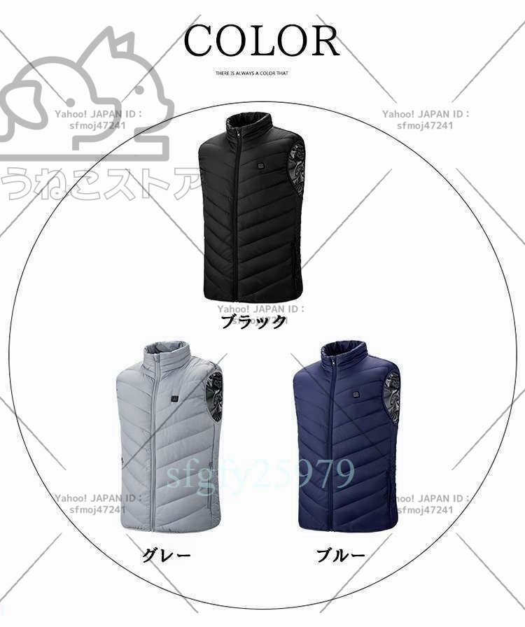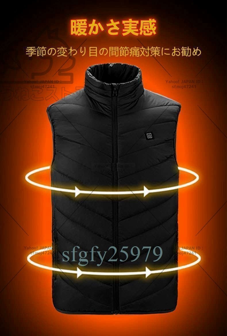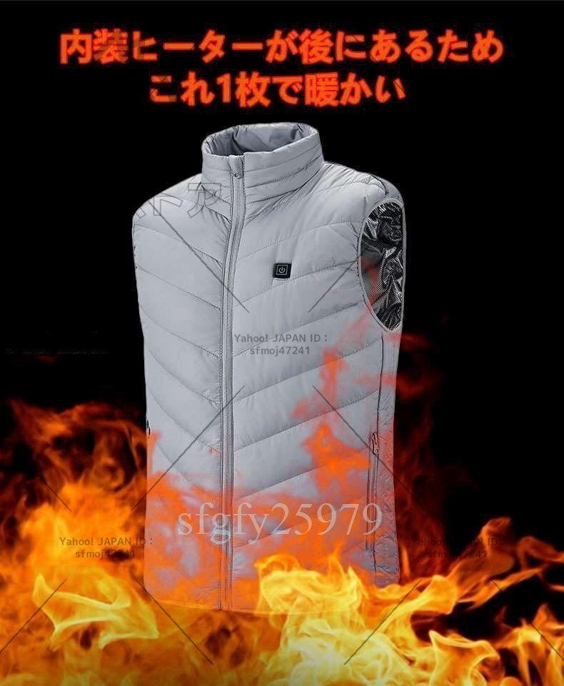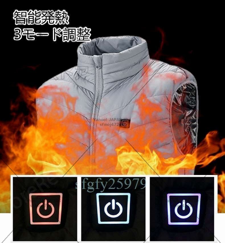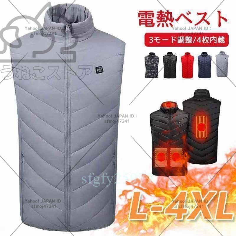 S037☆電熱ベスト ヒーターベスト 4つの発熱エリア 電熱ジャケット 丸洗い USB給電 3段階温度調整 加熱ベスト 急速発熱 4XL