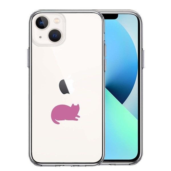 iPhone13 ケース クリアにゃんこ 伏せ ピンク スマホケース 側面ソフト 背面ハード ハイブリッド