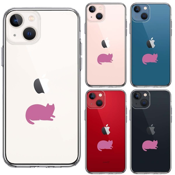 iPhone13mini ケース クリアにゃんこ 伏せ ピンク スマホケース 側面ソフト 背面ハード ハイブリッド