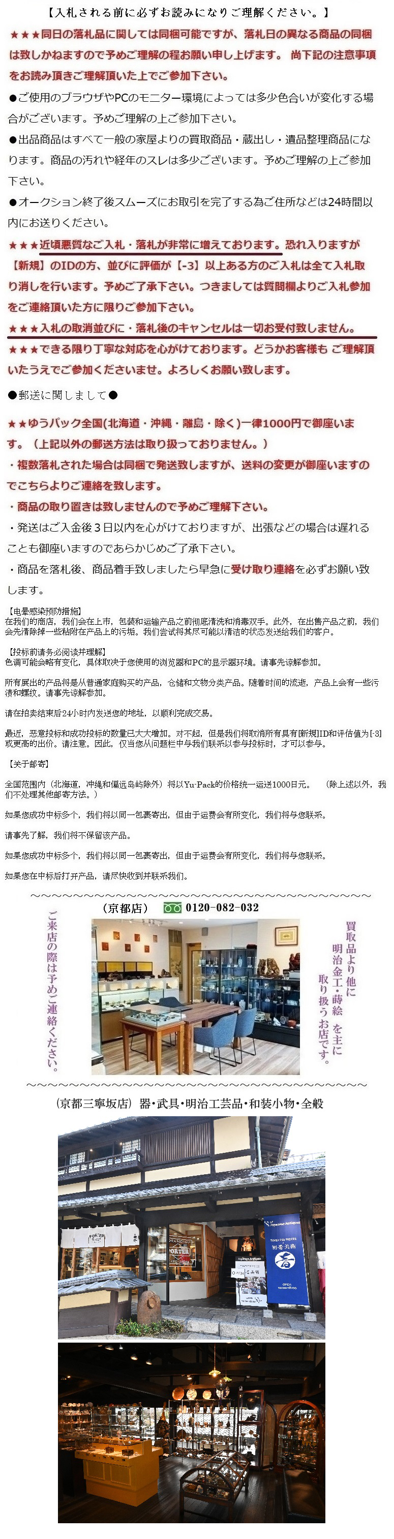 Ⅲ.一旦成功中标,您必须全额支付该拍品(成交价+消费税+银行转账费+日本邮费+代购费)。
