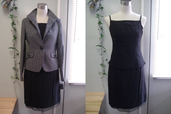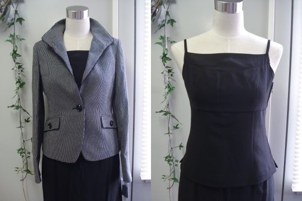 丸井取扱いブランド◆SHIFONERY◆より、ブラックに細かいホワイトの千鳥柄のセットアップスーツ(ジャケット・キャミソール・スカート)3点セットになります。