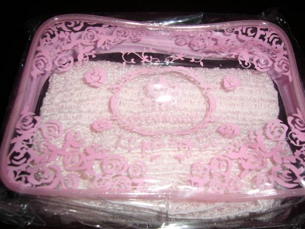 ・大きさ(ポーチの中に入っていますので、サイズが計れませんが、一般的なボディタオルの大きさと思われます。)