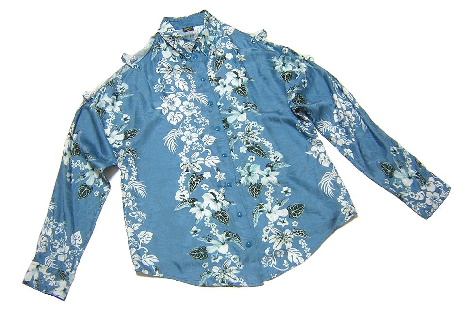 Jean Paul GAULTIER FEMME のイタリア製、 アロハブラウスでございます。 スナップボタン/オープンショルダー | |