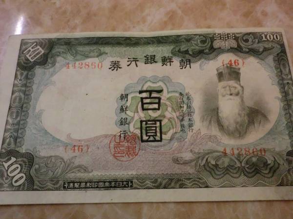 朝鮮銀行券 朝甲100円券で印刷裁断のズレが有ります。
