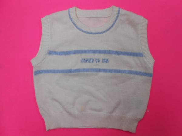 COMME CA ISM コムサ キッズ 男女兼用  ニット ベスト  白x水色 90㎝