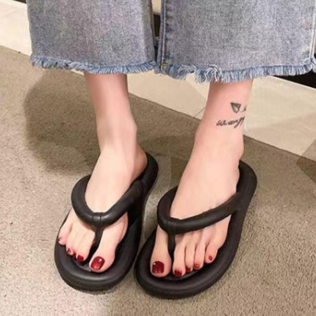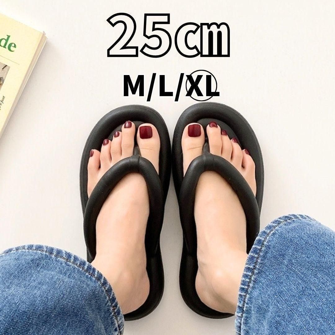 ビーチサンダル レディース 夏 サンダル おしゃれ スリッパ ぺったんこ 歩きやすい 痛くない 疲れにくい 防水 滑り止め 滑らない 黒 ブラック 24.5~25cm