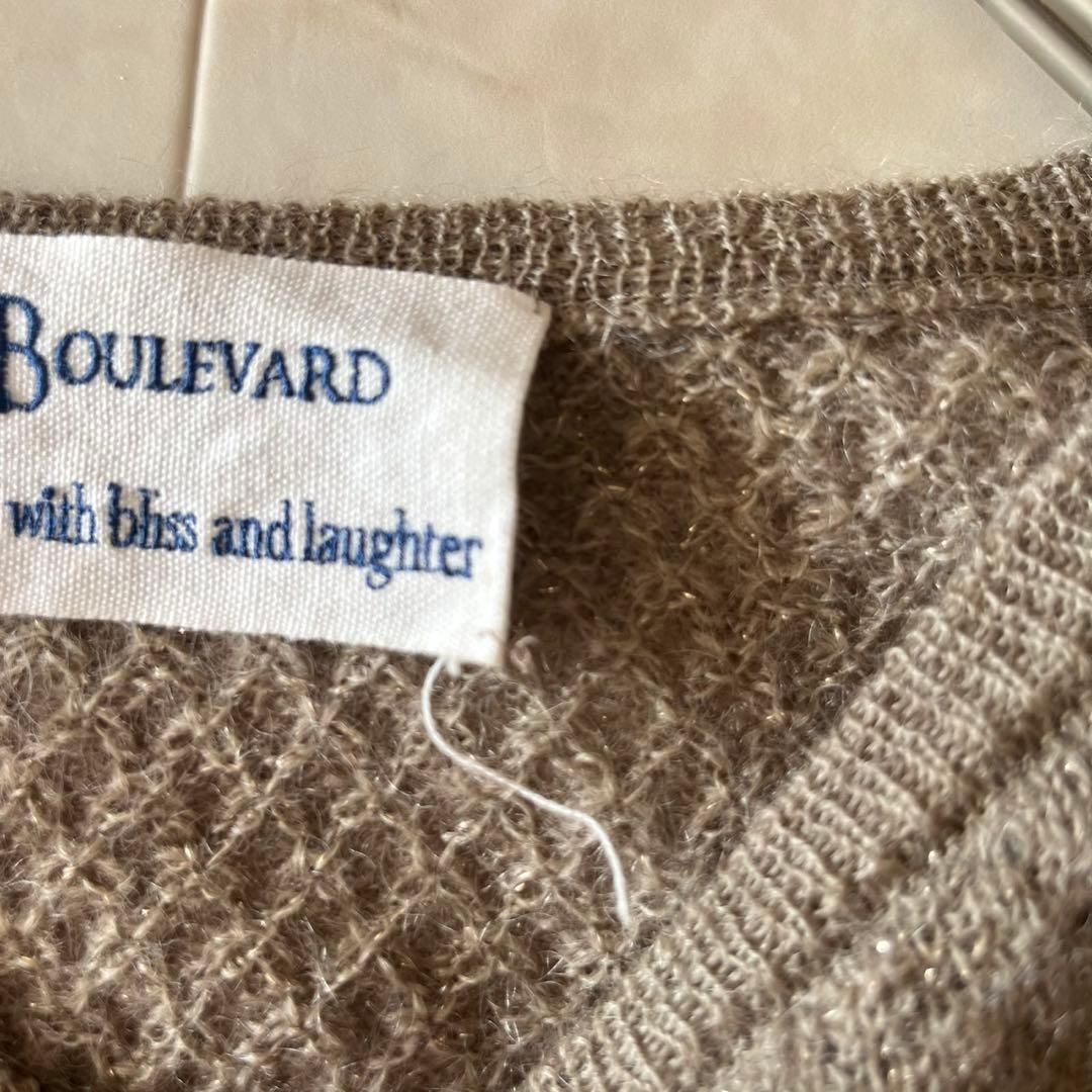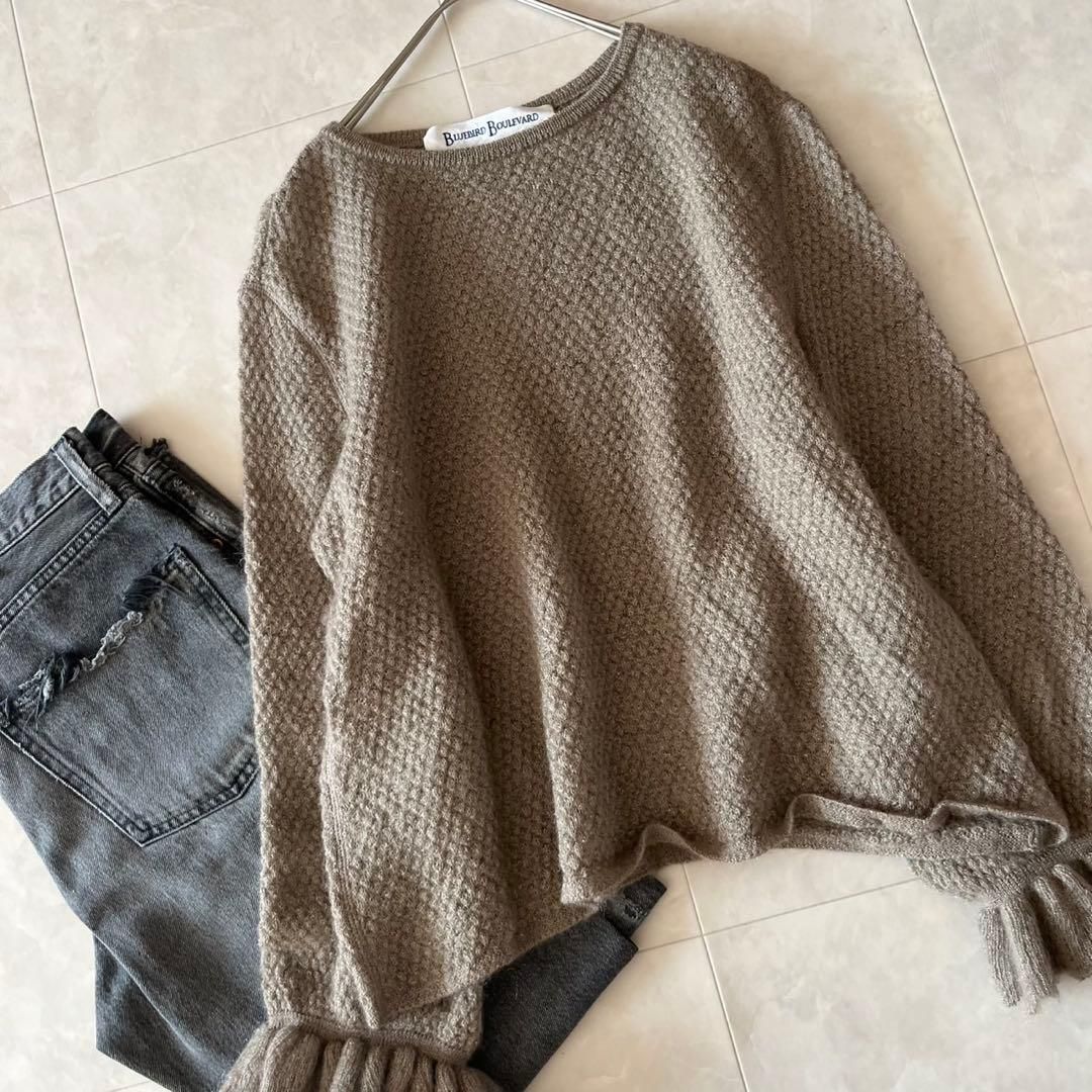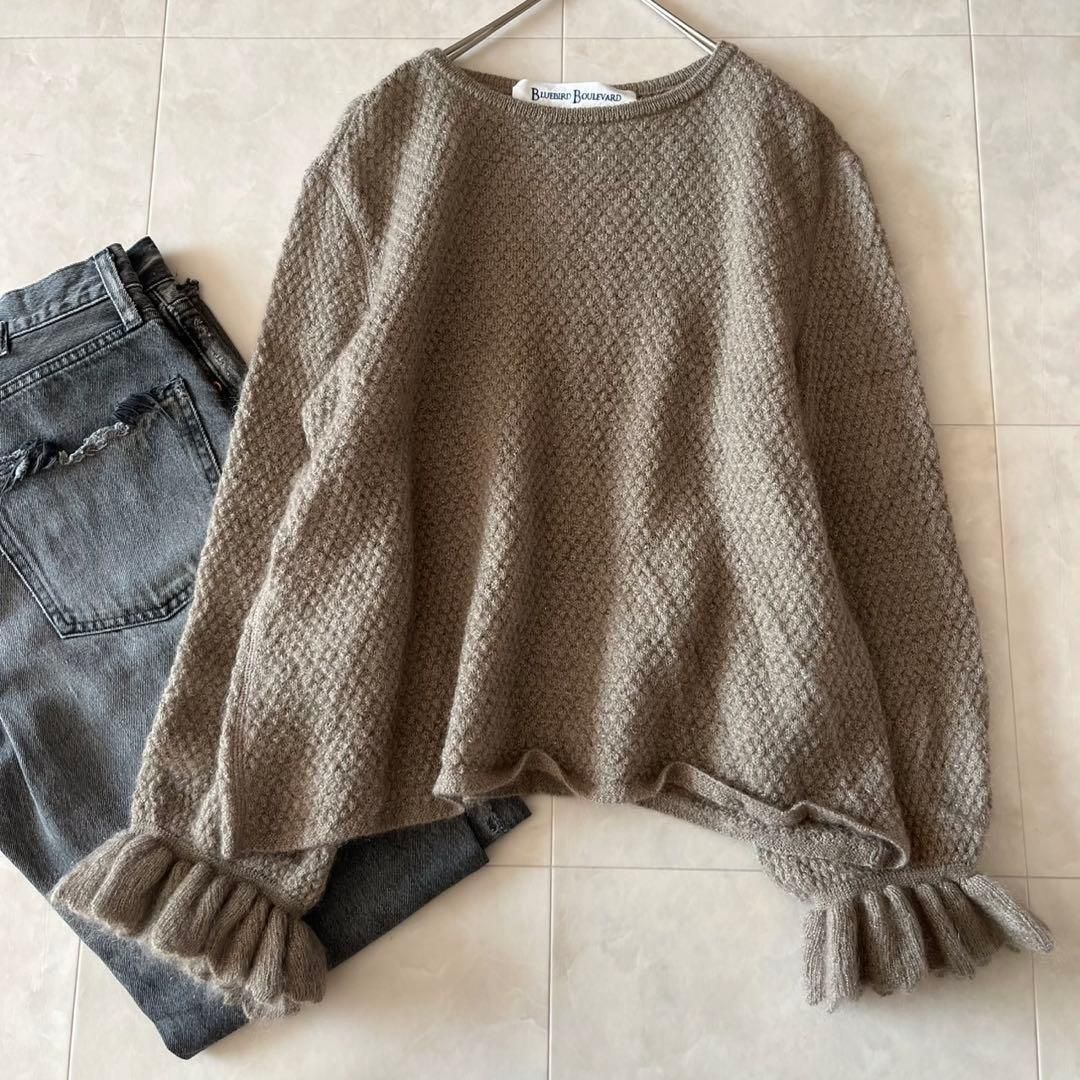 ふんわりとしたモヘア混素材が上品な印象のBLUEBIRD BOULEVARD(ブルーバードブルバード)のニットプルオーバー。袖口のフリルデザインが女性らしく、1枚で主役になるアイテムです。