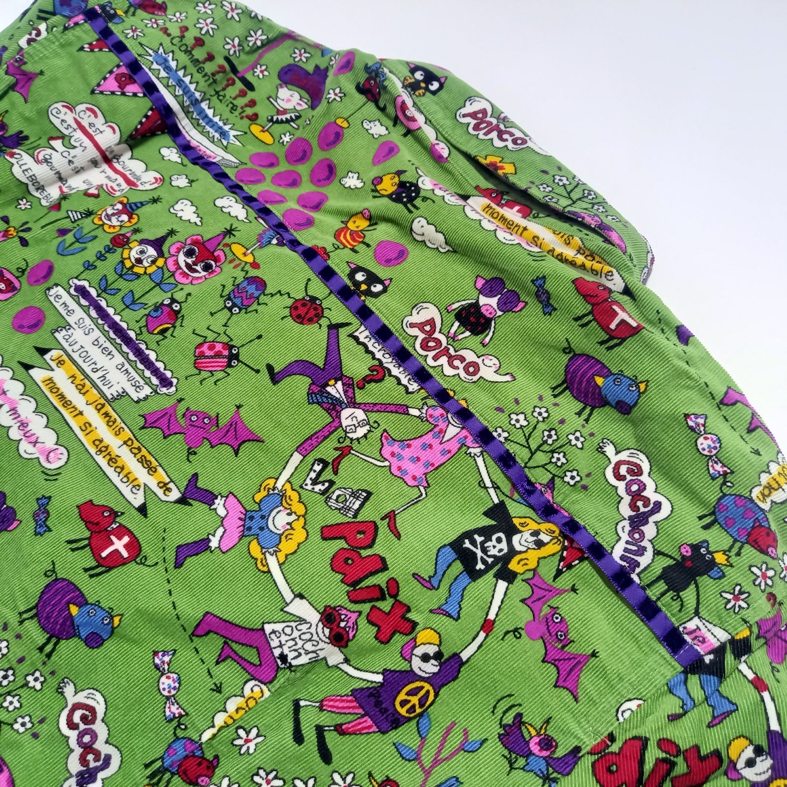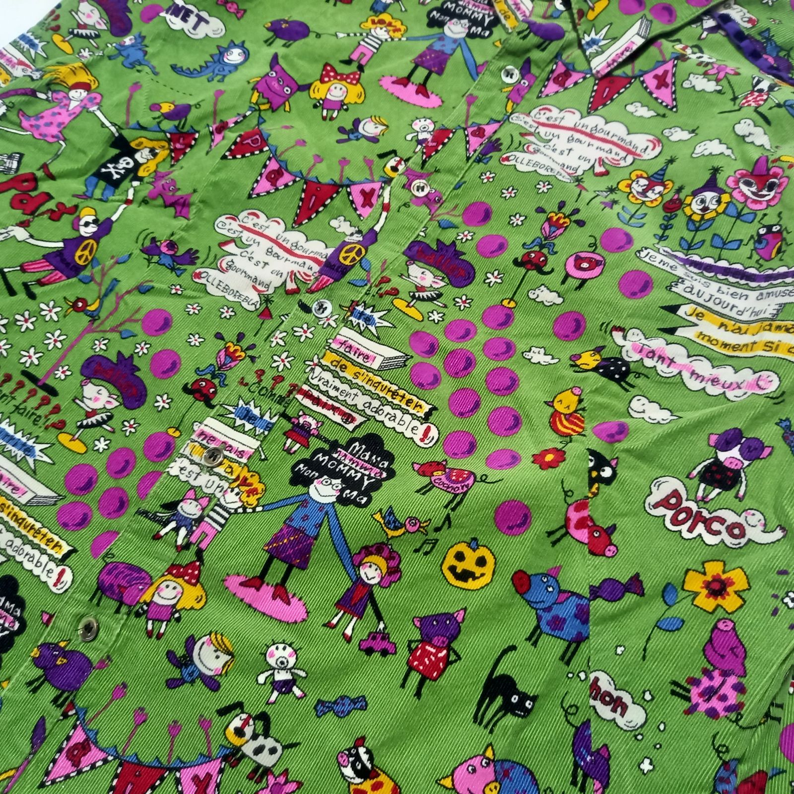 鮮やかなグリーンカラーにブランドらしい個性的なプリントが映え、コーディネートの主役になる一着。