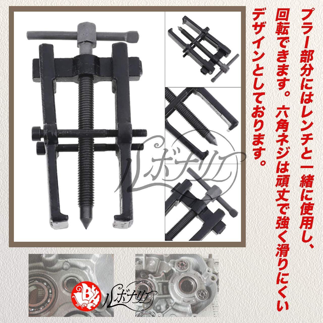 ルボナリエ クランクプーリー インペラ抜き工具 ベアリングプーラー プーラー 工具 ベアリング プーリー外し (ブラック 35x45mm)