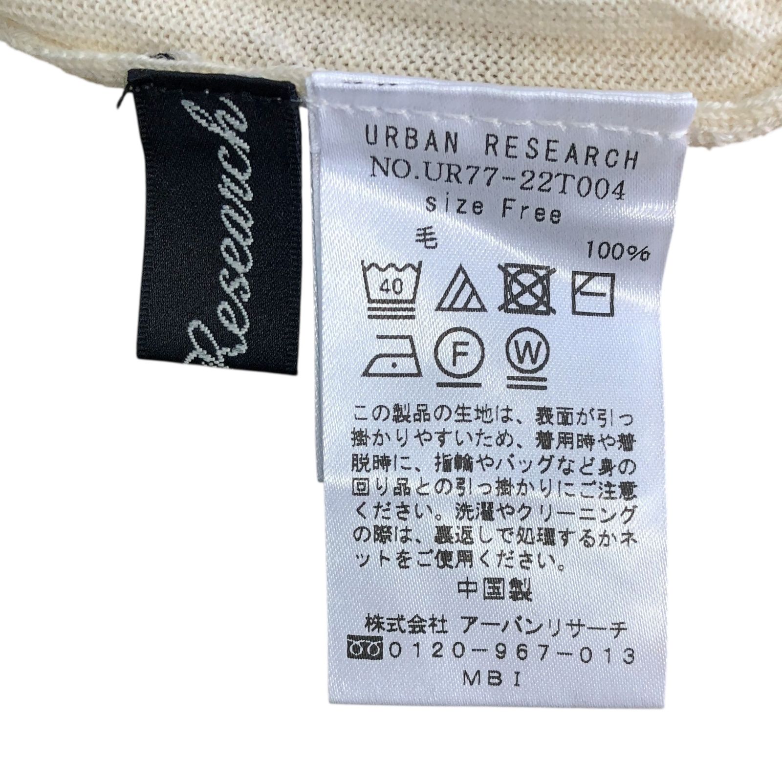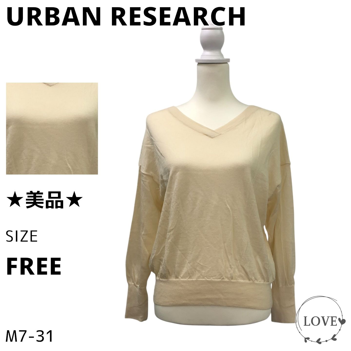 ★美品★ URBAN RESEARCH トップス ニット・セーター 長袖 Vネック 無地 毛 ニット レディース FREE オフホワイト