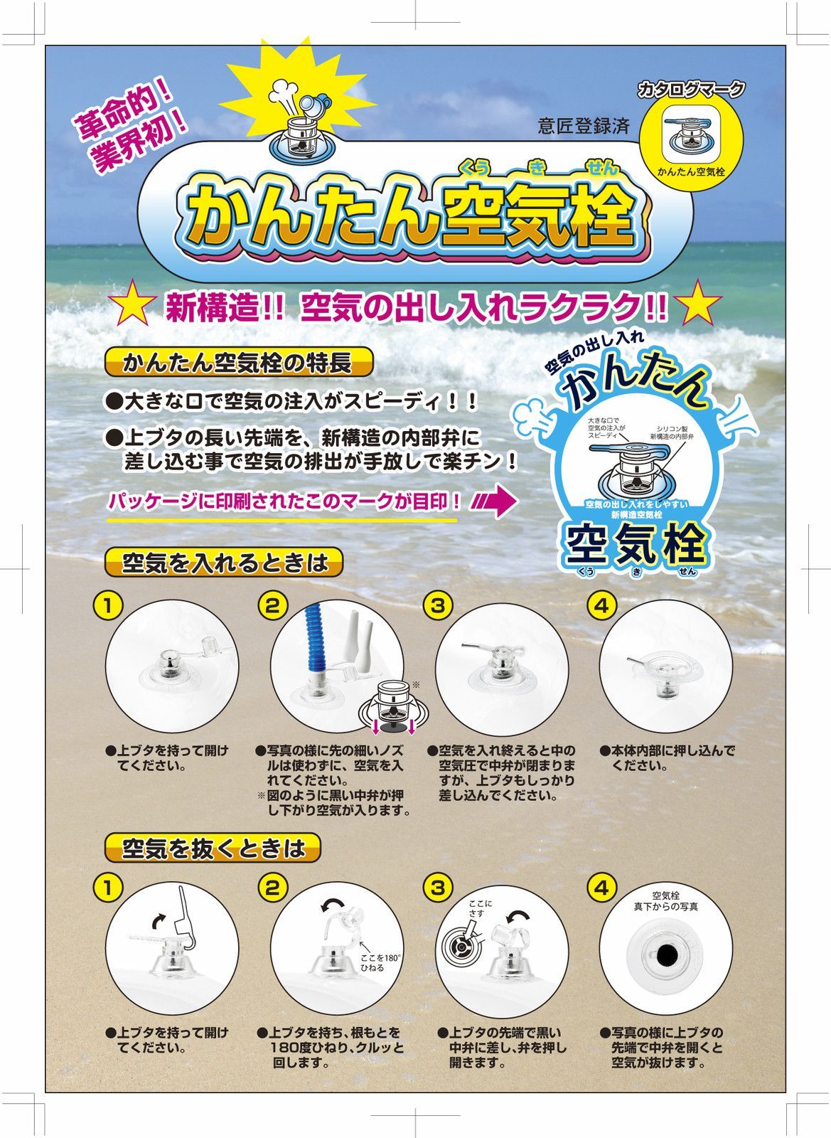 厚手PVC素材&かんたん空気栓で丈夫かつ手早く膨らませられ、後片付けもラクラク。