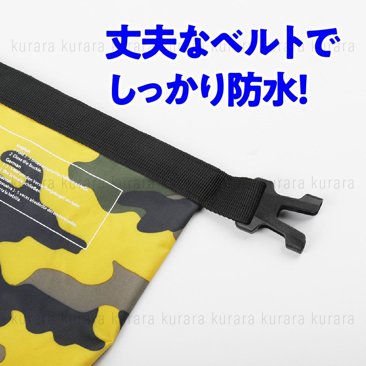 口の部分をロールして、最後にバックルで止めるので浸水を限りなく防ぐ事ができるウォータープルーフバッグ!