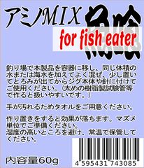 本製品と充分に溶かしたオキアミをよく混ぜ合わせます。加水量によってダンゴの硬さを調節できますので、様子を見ながら少量ずつ加えてください。
