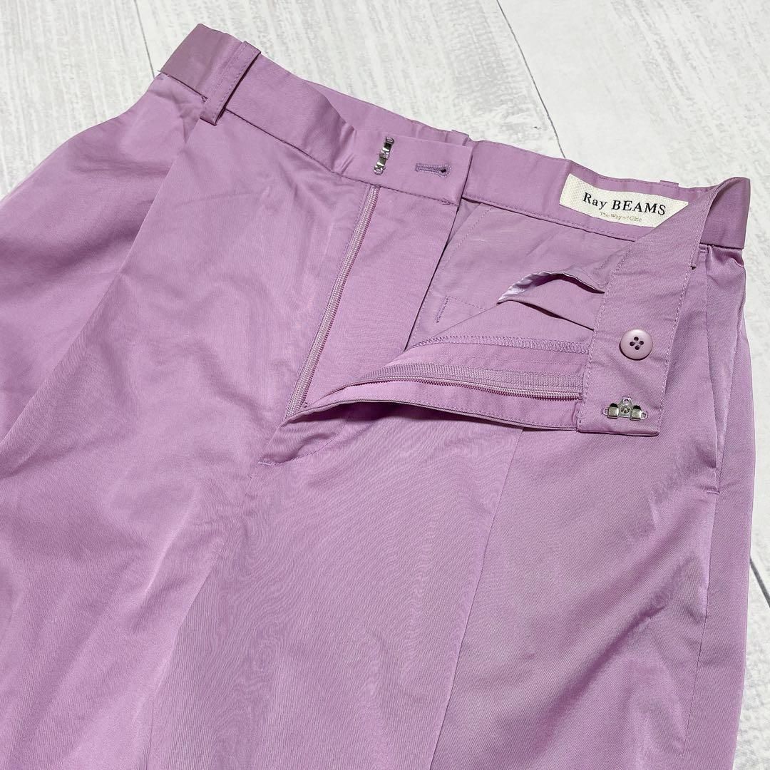 華やかなライトパープルが目を引く、Ray BEAMSのセンタープレスストレートパンツ。春夏の差し色コーデにぴったりの一本です。