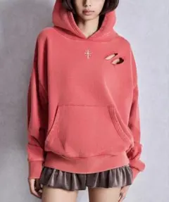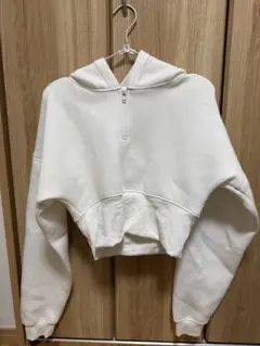 シンプルなブラックのフード付きパーカー、フロントポケット付き。