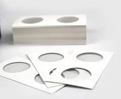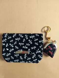 ベージュの三角形コインケース、内側は黄色でボタンが2つずつ付いてます