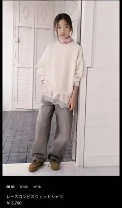 ゆったりとしたオーバーサイズシルエットなので、抜き襟にして着るととても可愛いです。ナチュラルなアイボリーカラーで、デニムやスラックスなど何にでも合わせやすい万能アイテムです。