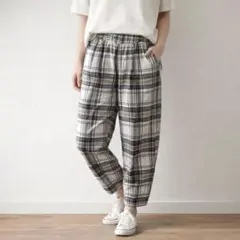 クロップド丈と麻混の生地で涼しくご着用いただけます。