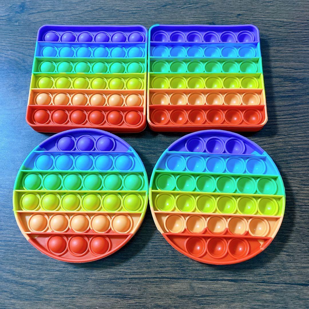 プッシュポップバブル おもちゃ スクイーズ玩具 染める ストレス解消グッズ ゲームボード 人気プレゼント クリスマスギフト 4個セット 四角形 丸型