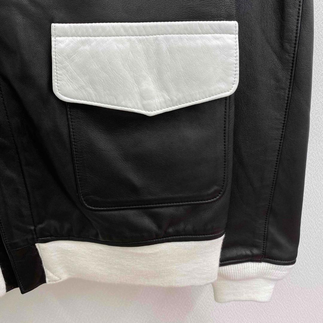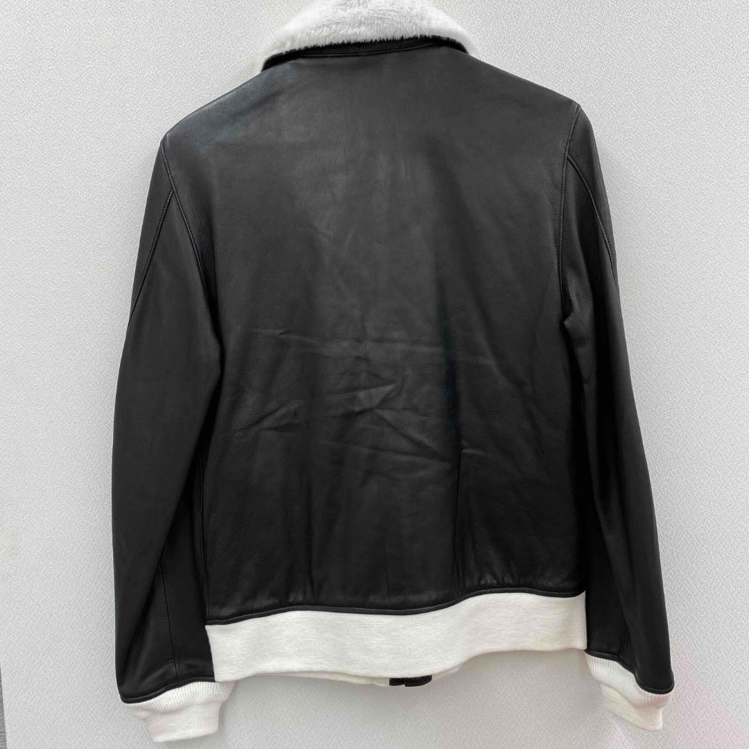 #襟フェイクファーバイカラーリブ切替シングルレザージャケット