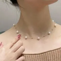 【極細ワイヤー×小粒パールの軽やかネックレス】