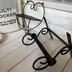 シンプルでモダンなデザインのブラックアイアンのトイレットペーパーホルダー、2ロール収納可能。