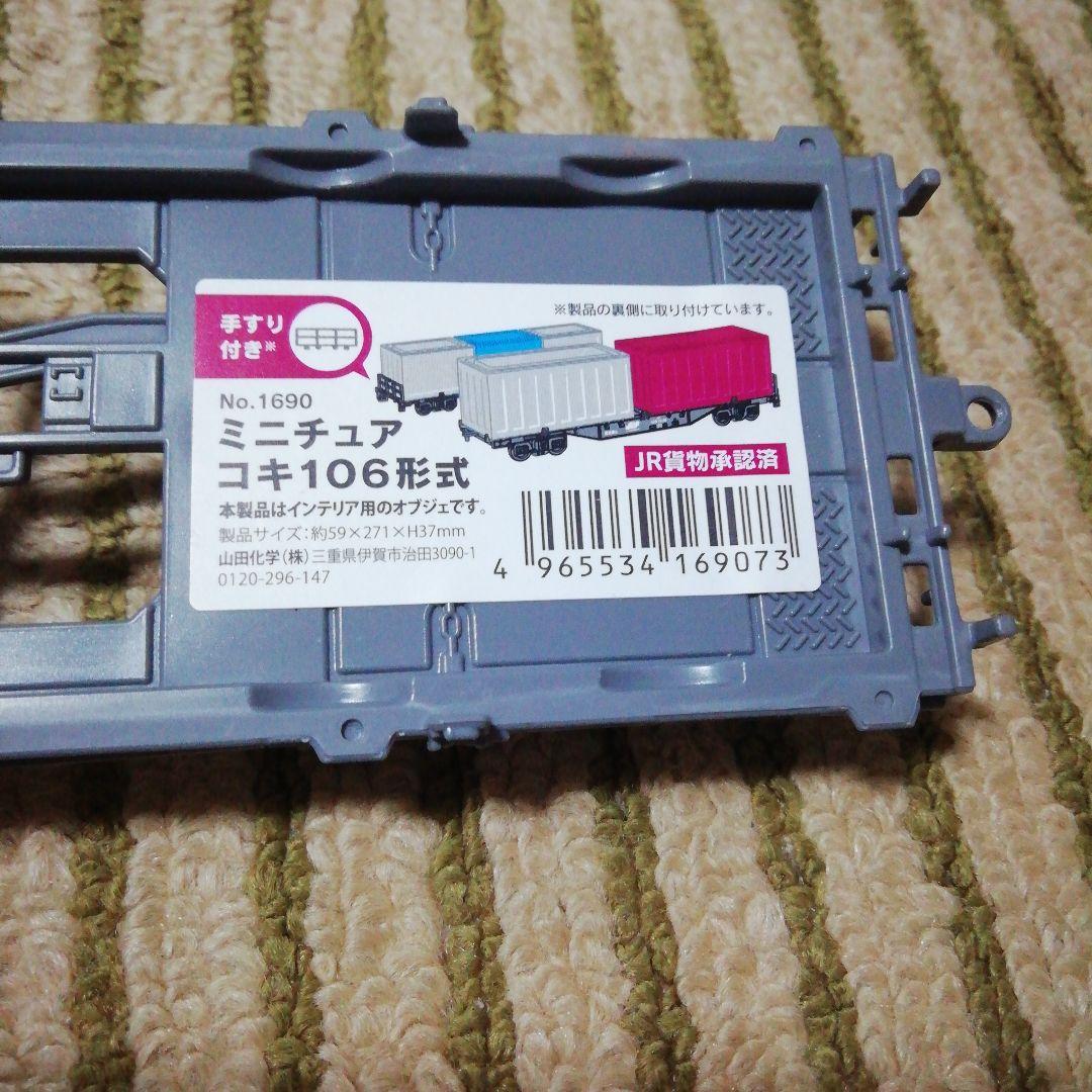 コンテナ小物入れ7個とコキ106-1036が2台です。コキは自走しません。コンテナの飾り用です。コンテナサイズは長い方は約5cm×11.4cm高さ5.2cm短い方は5cm×8cm高さ5.2cmです。お店の店頭にあった物を購入した物で傷等見落としがあるかもしれません。気になる方はご遠慮下さい。