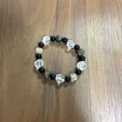 ブレスレット ハンドメイド ビーズ 黒 マーブル