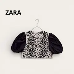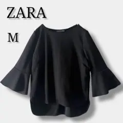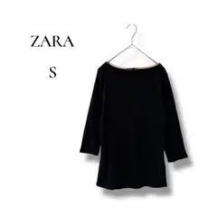ZARA KNIT ボーダー トップス S スクエアネック 七分袖 ブラック ホワイト 細見え