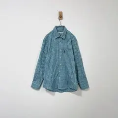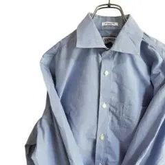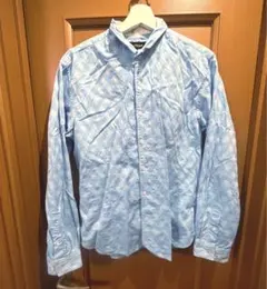 美品 vesvio 水色チェック長袖綿シャツ